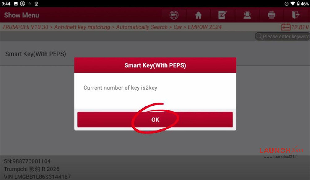 Done! 2025 GAC Trumpchi Yingbao new keys was added by Launch X431 IMMO tools.