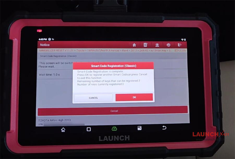 This is the complete process for adding a smart key to a 2013-2018 Toyota RAV4 or Camry using the Launch X431 PRO Elite diagnostic tool. Follow the steps carefully to ensure successful registration and functionality of the smart key.